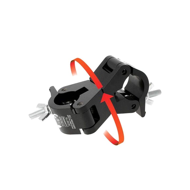 The industry standard swivel coupler. Consists of a pair of high tensile extruded aluminium clamps back to back designed to swivel 360 degrees, that are suitable for 48mm to 51mm diameter tubes. It has a WLL of 750Kg and uses a pair of 50mm wide clamps.