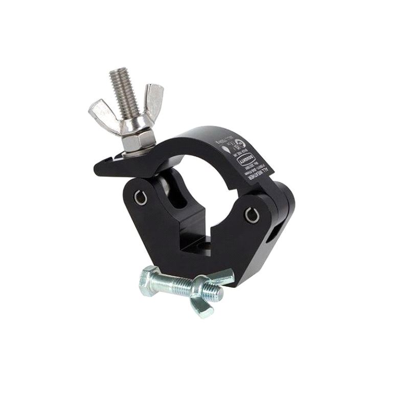 Ideal for use on trussing as it will not damage the cords. Supplied with a sachet of Copper Grease to prevent Stainless threads galling, and available in a powder coated black finish.