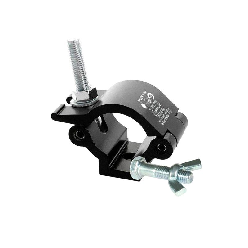 Ideal for use on trussing as it will not damage the cords. Supplied with a sachet of Copper Grease to prevent Stainless threads galling, and available in a powder coated black finish.