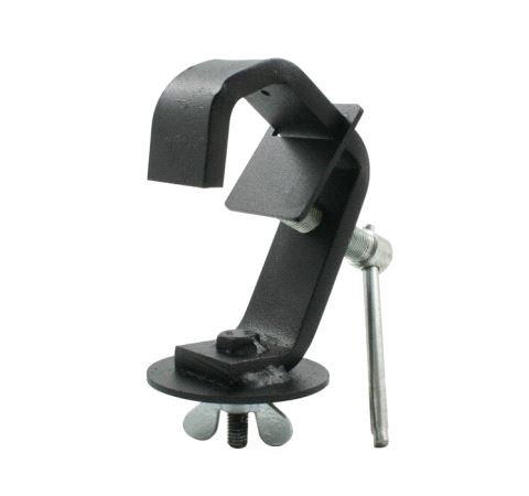A steel heavy duty hook clamp suitable for 38mm to 51mm diameter tube complete with a strip to help protect the tube. Powder coated black finish.