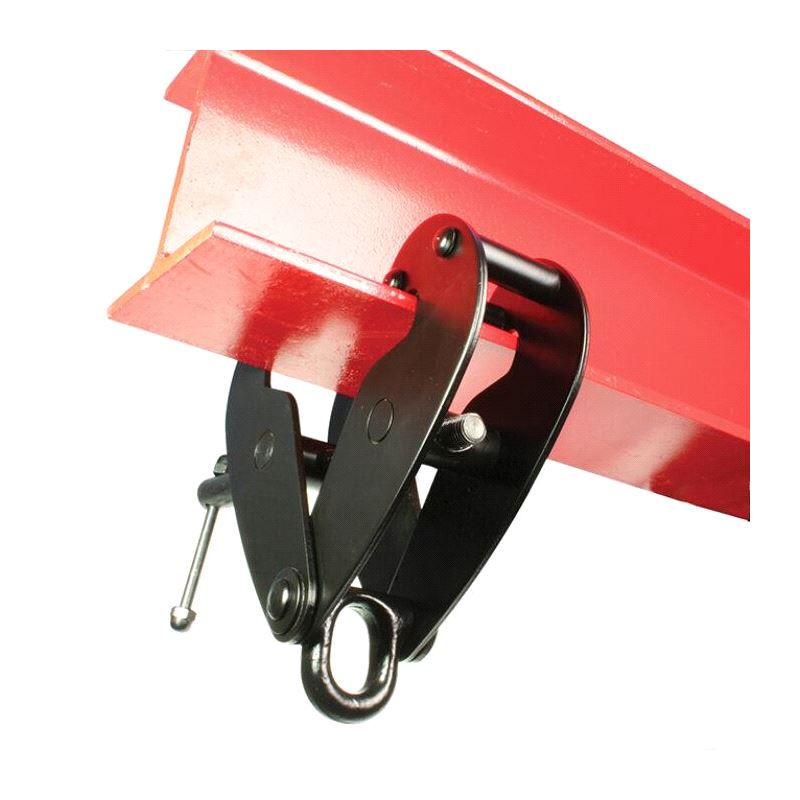 A heavy duty steel clamp designed to fit girders. This beam clamp is manufactured with a forged steel attachment eye.