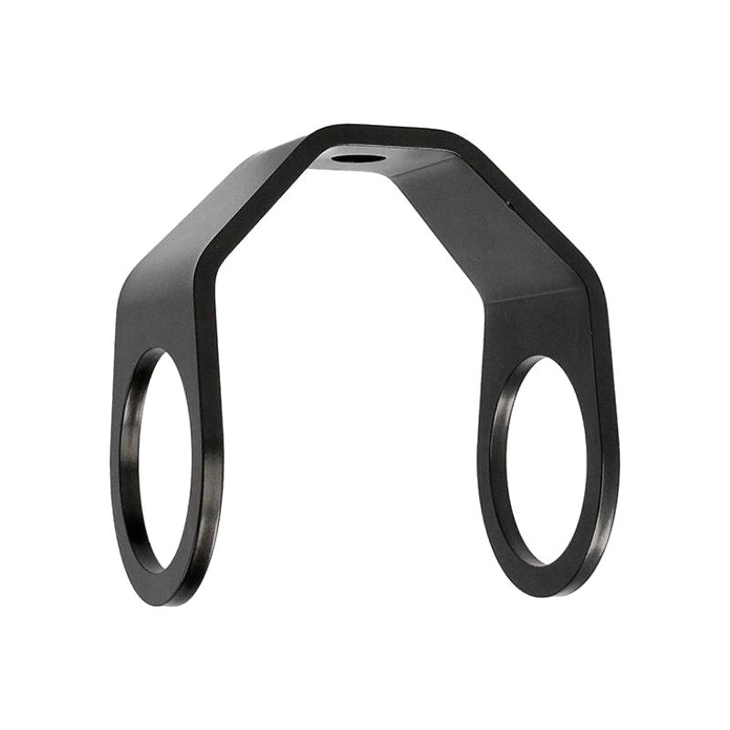 A folded steel hanger designed to suspend 48mm diameter tube from an M12 stud or bolt fixing.