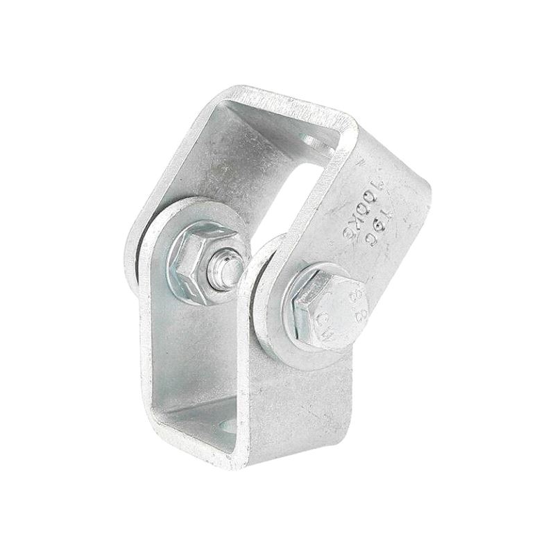 A useful steel Universal Joint which is supplied with two M12 fixing holes. This joint can be used in conjuction with many of our clamps to help overcome flying bars from angled suspension points.
