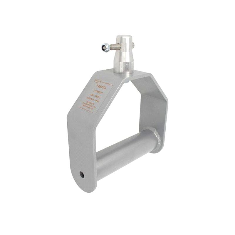 An aluminium Stirrup, ideal for mounting a single luminaire in line with the vertical drop arm.
