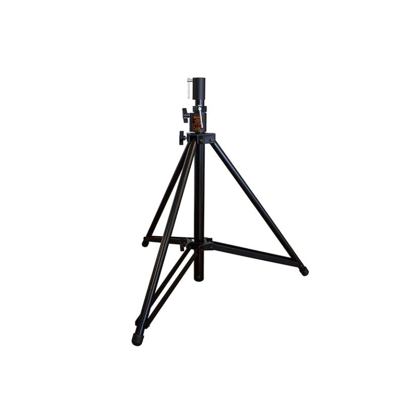 A high quality telescopic Followspot stand features internal spring dampers, double leg braces and die cast aluminium lock off knobs. The stand comes with a locking safety collar and a TV spigot receiver to accept 28mm diameter spigots. The Followspot Shadow stand is available in powder coated black and has a maximum height of 1.41m and a WLL of 40Kg.