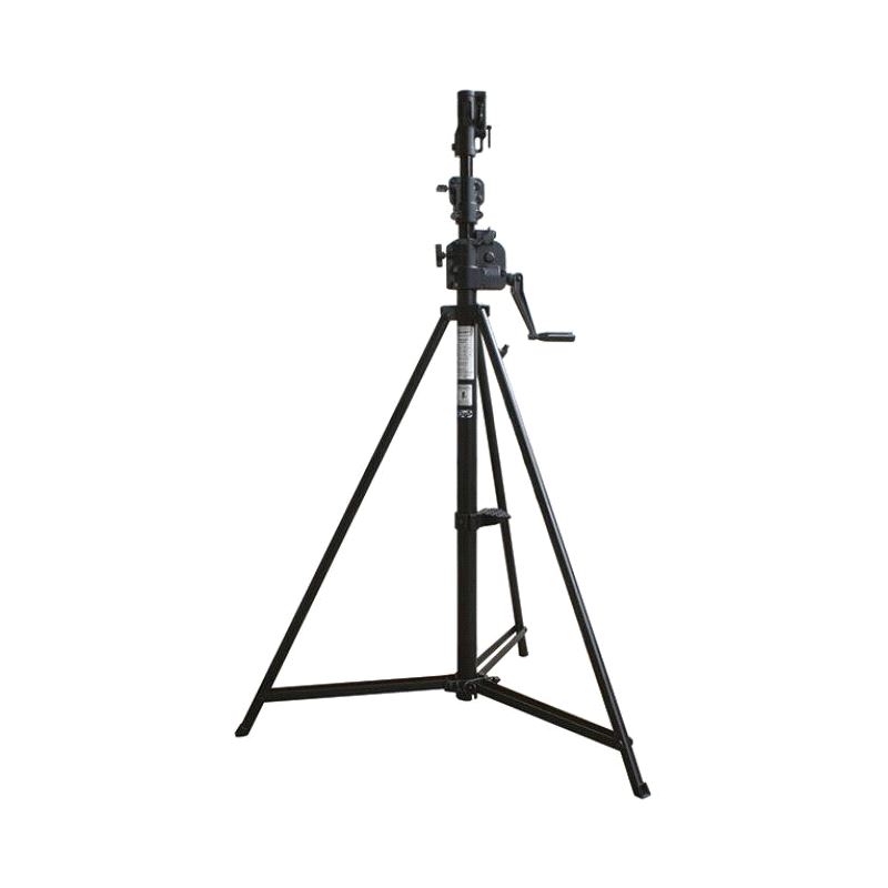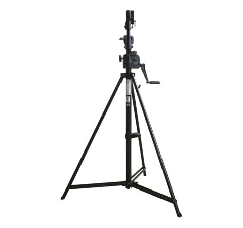 A high specification wind up stand designed specifically to suit the demanding requirements of the entertainment industry. Safety features include a twin cable lifting system, self braking winch and a unique secondary auto lock. These stands have a maximum height of 3.8M and a WLL of 30Kg.