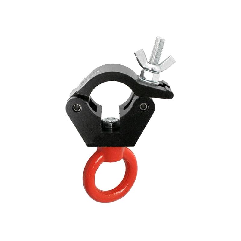 The industry standard half coupler factory fitted with an Eye Nut. A high tensile extruded aluminium clamp that is suitable for 48mm to 51mm diameter tubes and is 50mm wide. Ideal for trussing as it will not damage the cords.
