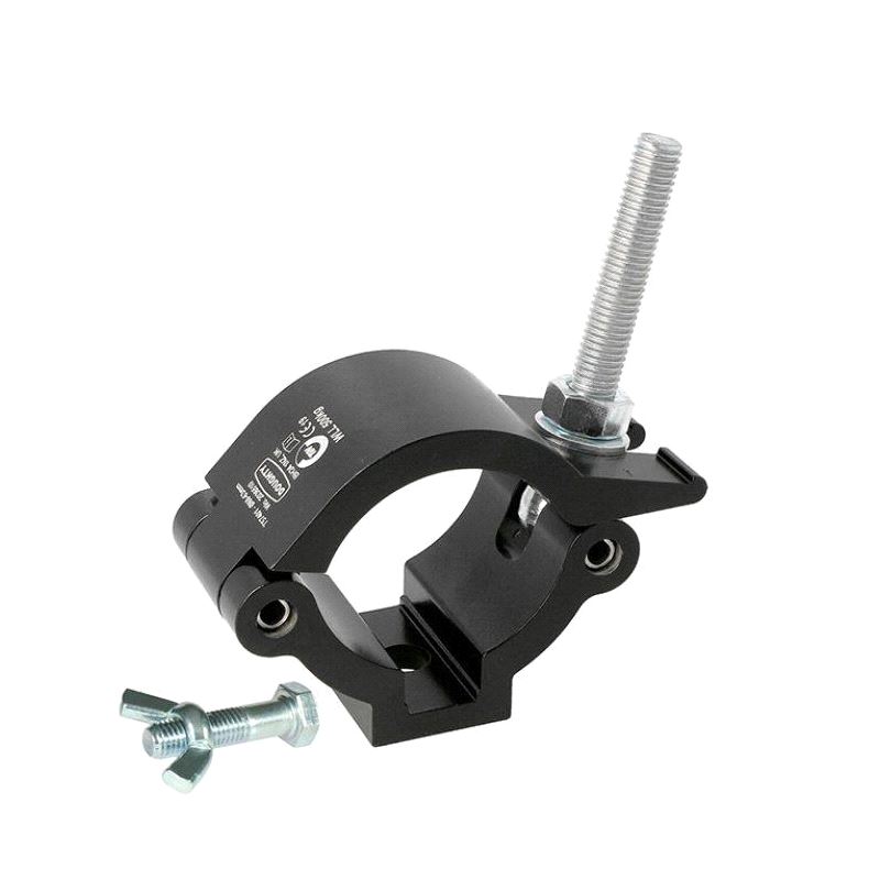 A high tensile extruded aluminium clamp that is suitable for 60mm to 63mm diameter tubes. It has a WLL of 500Kg and is 50mm wide. Slotted to hold captive an M10 or M12 nut or bolt head and supplied with an M10 X 35 bolt and M10 wing nut.