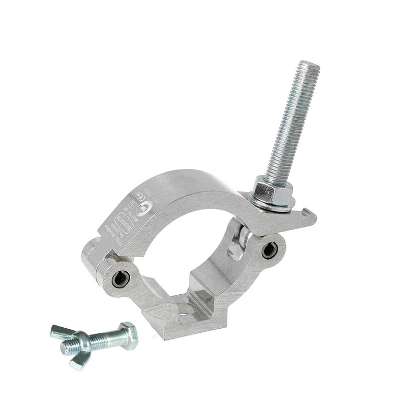 A high tensile extruded slimline aluminium clamp that is suitable for 60mm to 63mm diameter tubes. It has a WLL of 300Kg and is 50mm wide. Slotted to hold captive an M10 or M12 nut or bolt head and supplied with an M10 X 35 bolt and M10 wing nut.