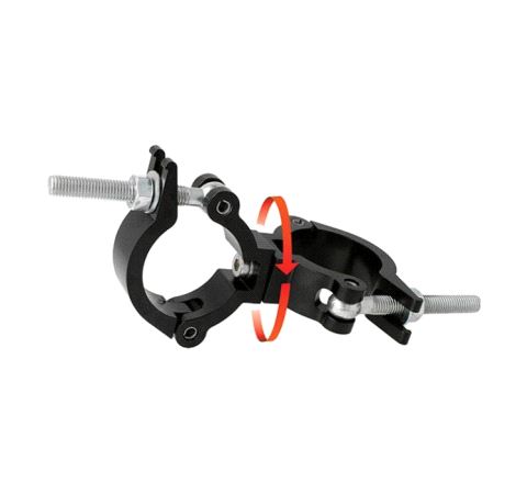 Consists of a pair of high tensile extruded slimline aluminium clamps back to back and designed to swivel, that are suitable for 60mm to 63mm diameter tubes. It has a WLL of 300Kg and uses a pair of 30mm wide clamps.