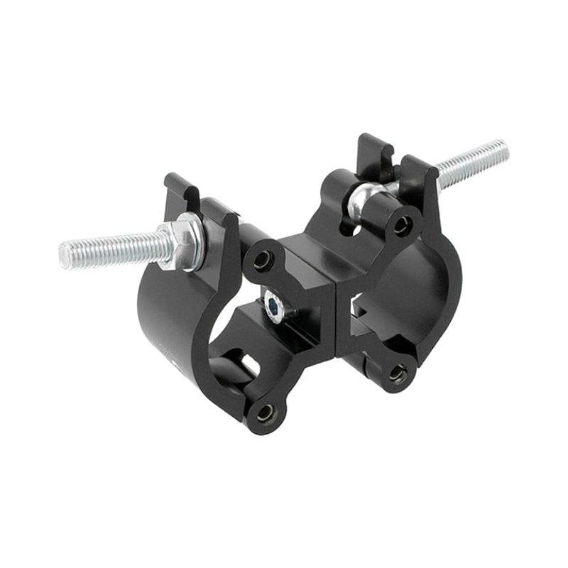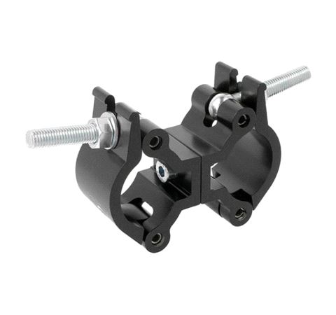A pair of high tensile extruded aluminium clamps back to back, locked parallel that are suitable for 48mm to 51mm diameter tubes. It has a WLL of 500Kg and uses a pair of 50mm wide clamps. Ideal for trussing as it will not damage the cords.