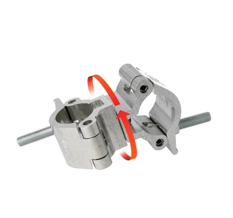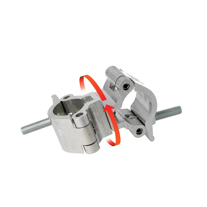 A pair of high tensile extruded slimline aluminium clamps back to back and designed to swivel 360°, that are suitable for 48mm to 51mm diameter tubes and are 50mm wide. Ideal for trussing as it will not damage the cords.