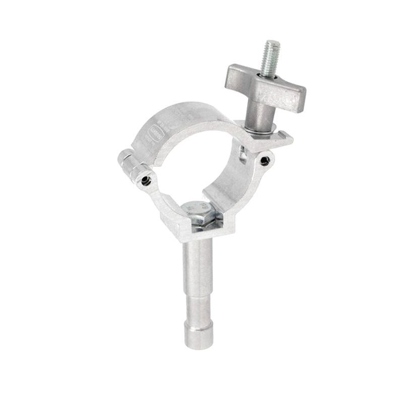 A high tensile extruded aluminium clamp that is suitable for 48mm to 51mm diameter tubes. It has a WLL of 100Kg and is 30mm wide factory fitted with a 16mm diameter spigot. Ideal for trussing as it will not damage the cords.