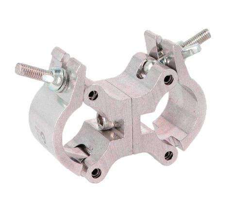Consists of a pair of high tensile extruded aluminium clamps back to back locked in parallel that are suitable for 32mm diameter tubes. It has a WLL of 100Kg and uses a pair of 30mm wide clamps. Ideal for decorative trussing as it will not damage the cords.
