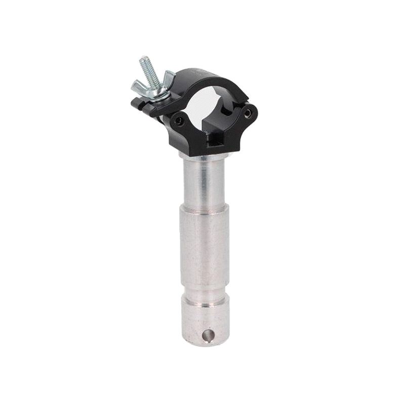 A high tensile extruded aluminium clamp that is suitable for 32mm diameter tubes. It has a WLL of 100Kg and is 30mm wide factory fitted with a 28mm diameter TV spigot. Ideal for decorative trussing as it will not damage the cords.