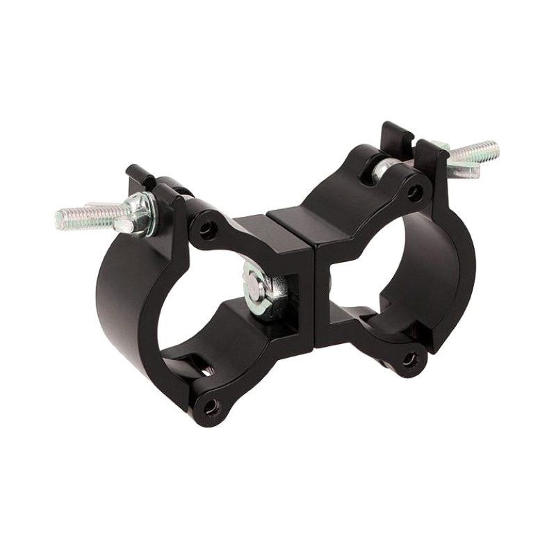 Consists of a pair of high tensile extruded aluminium clamps back to back locked parallel that are suitable for 38mm diameter tubes. Has a WLL of 100Kg and uses a pair of 30mm wide clamps. Ideal for decorative trussing as it will not damage the cords.