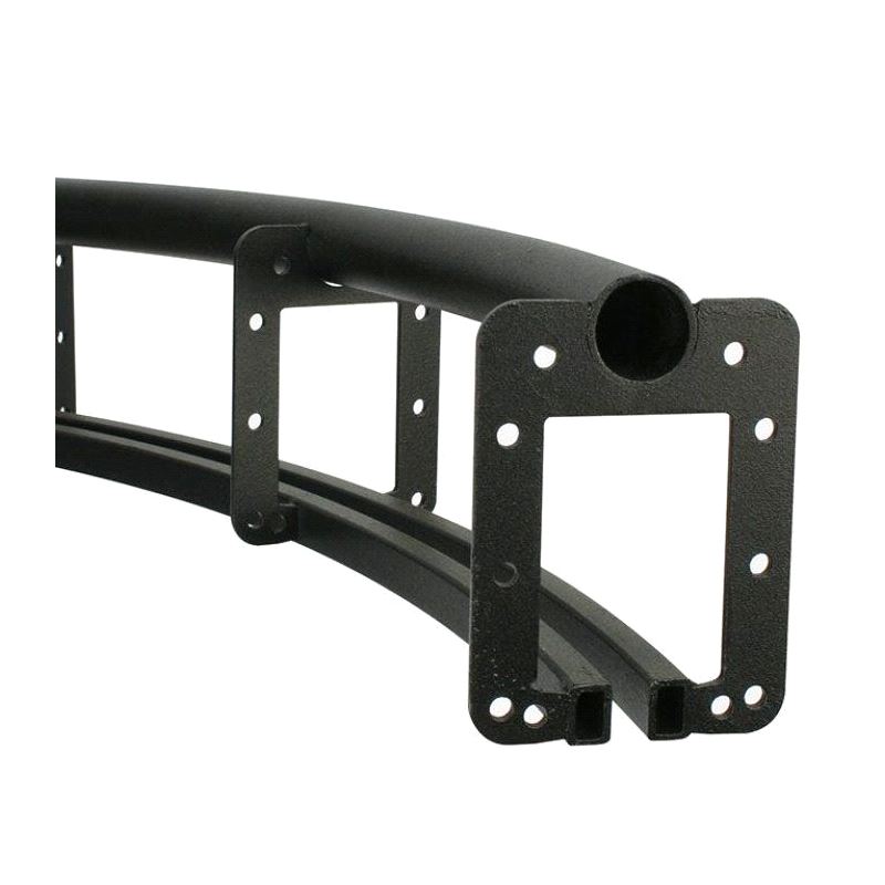 A range of steel 90 degree curved curtain track sections available in various lengths. Six Track is a modular medium duty curtain track that is ideal for use in theatres, arts centres, colleges and schools.