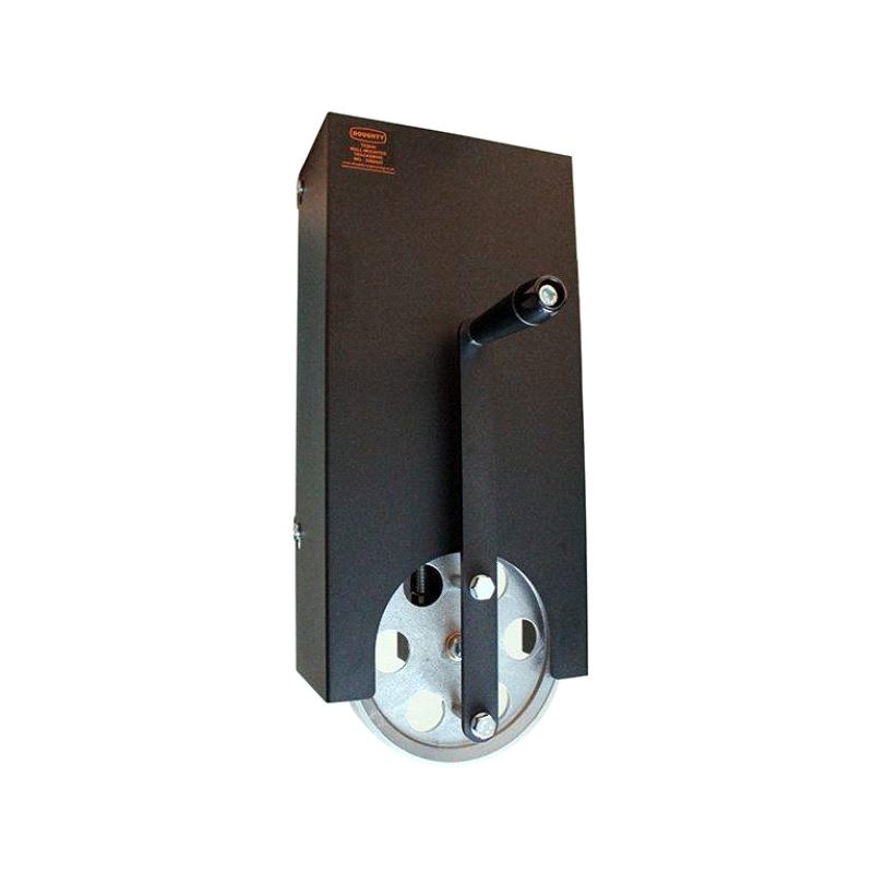 A mild steel and aluminium Wall Mounted, Hand Operated Track Drive that is specifically designed for hauling curtains, not for lifting. Fitted as part of the continuous loop hauling line, they incorporate a hauling line tensioning system.