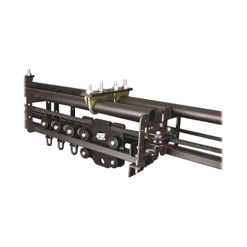 A range of overlap line operated track kits that opens from the centre out. Line operated track kits include all the components required to install your chosen track length. A typical kit comprises of track, adjustable support brackets, a nut and bolt set, master runner, runners, pulleys, hauling line, line supports and a weighted hand pulley.