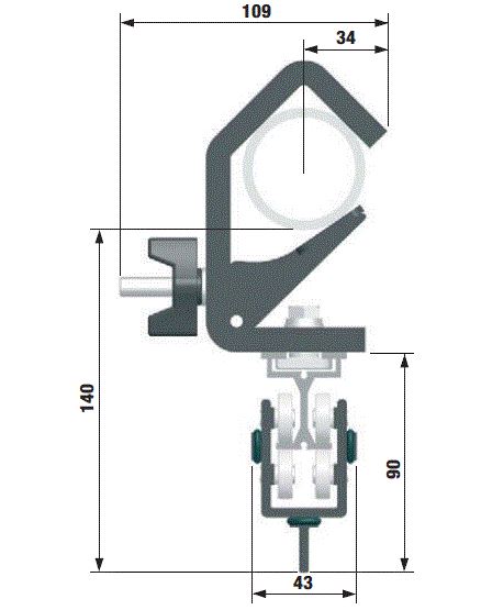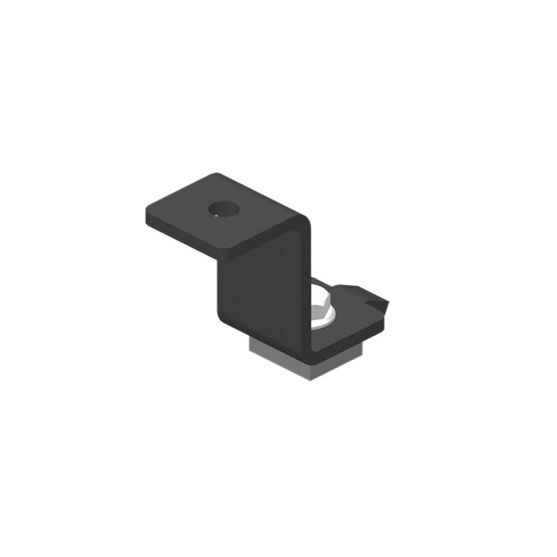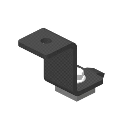Svart opphengsbrakett for TRUMPF 95 skinne med utstyrskit for direkte montering i toppkanalen på toppen av skinnen (utstyrssporet). Braketten har hull som passer inntil M12 bolt. Tillater sideføring av trekketau.