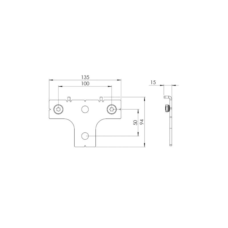 Monteringsplate for to paralelle skinneløp via bolt/gjengestang/krok (ikke inkl.)