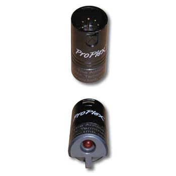 "Arnold the Terminator": 100 Ohms 3-pin XLR plugg med LED indikator for terminering på siste dimmer. Et nødvendig hjelpeverktøy for å sikre stabil overføring av digitale styresignaler over flere ulike dimmere, LED armaturer eller moving heads.