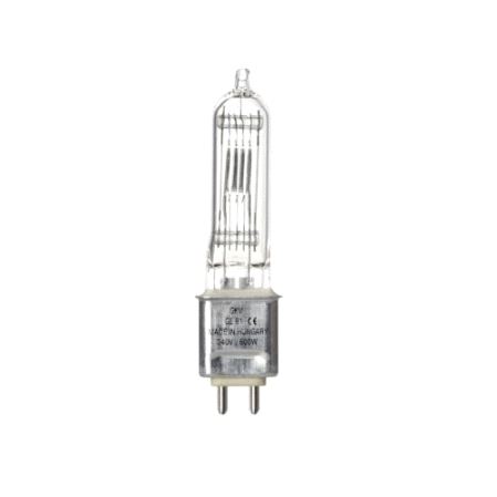 Teaterlampe for lyskastere med maks 600w effekt og sokkeltype G9.5. Fabrikat: G.E. Levetid, 1500 timer / fargetemperatur, 3000°K (11.000 lm). Passer bl.a til standard teaterlyskastere som profiler og fresneller med oppgitt maks effekt på 600w.