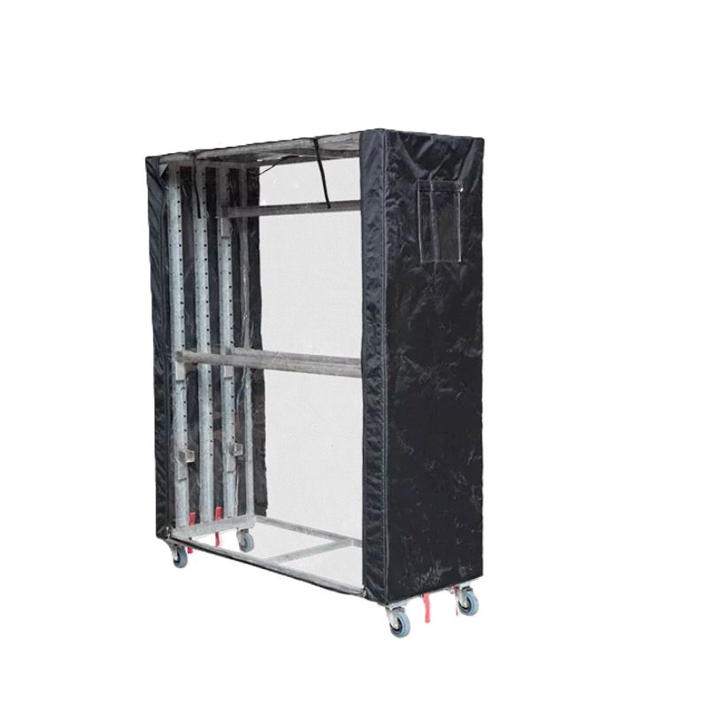 Rain and dust protection for transport dollies. Introducing the ultimate solution to safeguard your light fixtures and equipment from dust and sand, and from unpredictable weather conditions. Its transparent design on the front and back allows for visibility, ensuring you can easily identify your gear without having to remove the cover. Two sizes are available: standard size and half size. Both feature convenient zippers that ensure quick and easy access to your equipment.