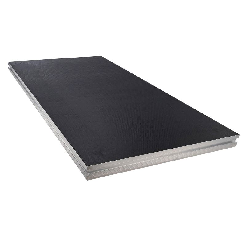 Denne modellen har en standard størrelse på 2x1 meter. Alu-Rapid podier er konstruert for høydevariasjon med stikkbein i faste høyder eller med teleskopbein.
