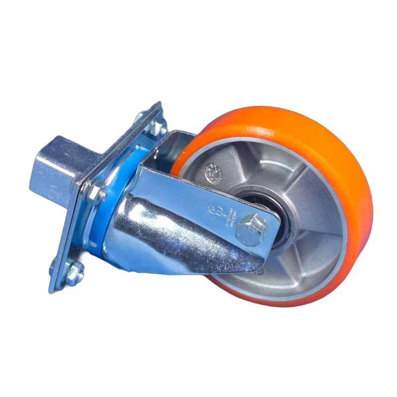 Spesial transporthjul i gummi. Leveres i enhet på 1 stk svingbart hjul. Farge: orange.