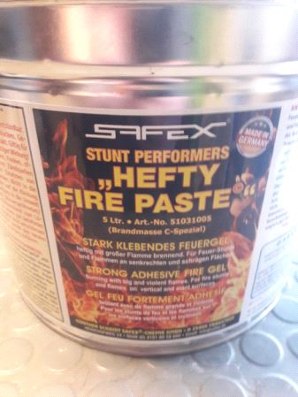 SAFEX®-Stunt Performers "Hefty Fire Paste" er en kombinasjon av brennende blanding B og C med høy klebeevne. Svært tykke lag kan også påføres vertikale flater etc. med denne spesielle brannblandingen.
