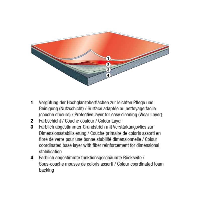 3. Colour coordinated base layer with fiber reinforcement for dimension stability.